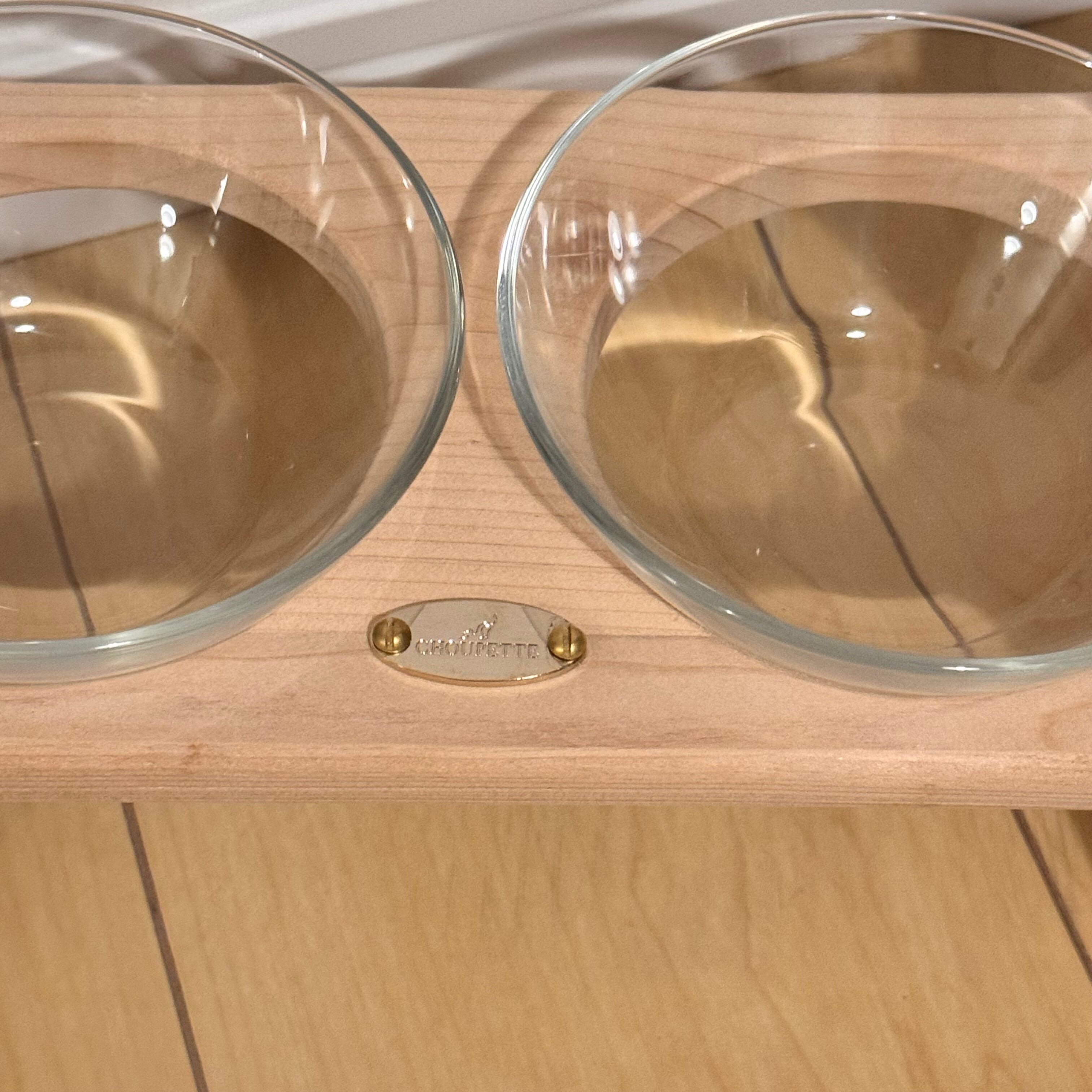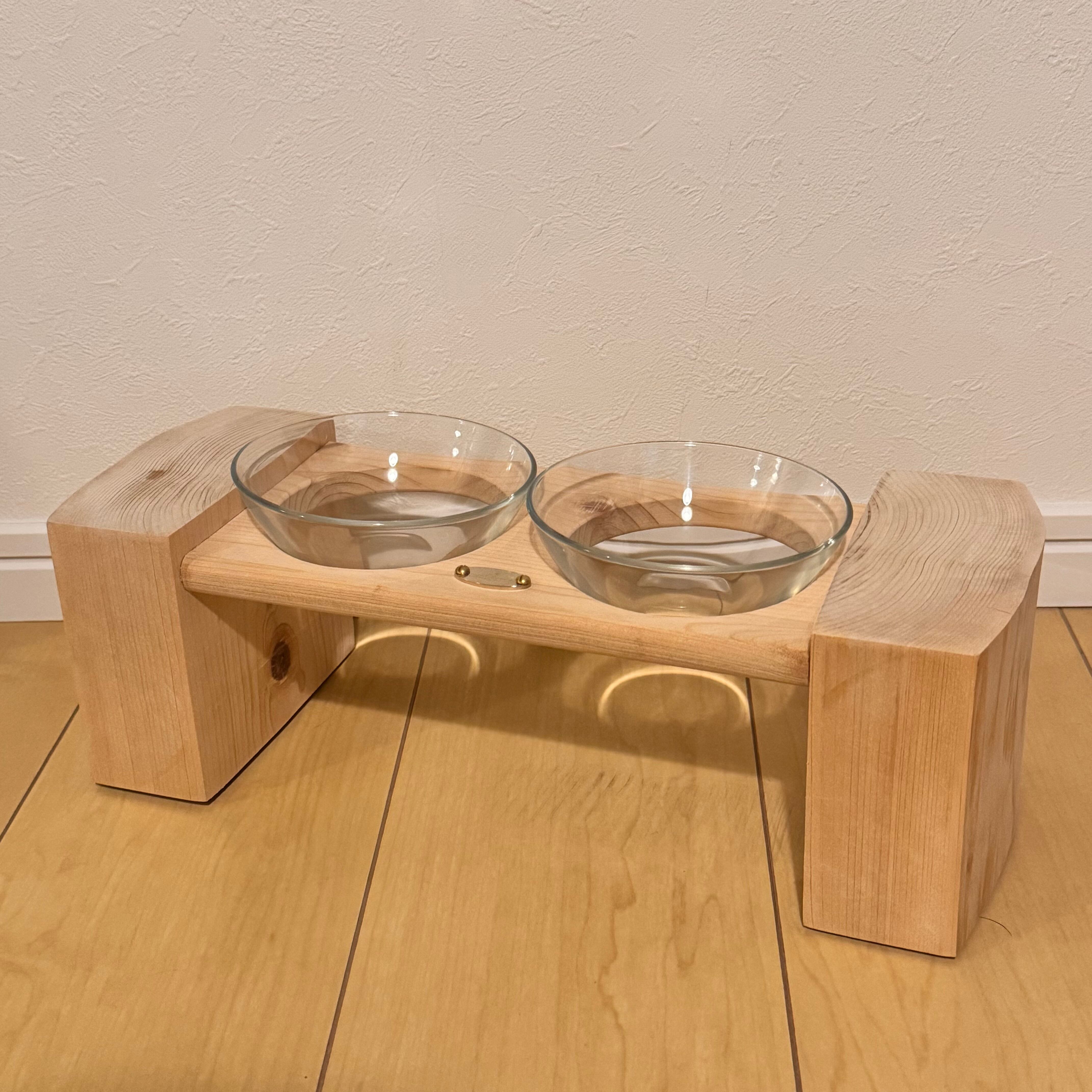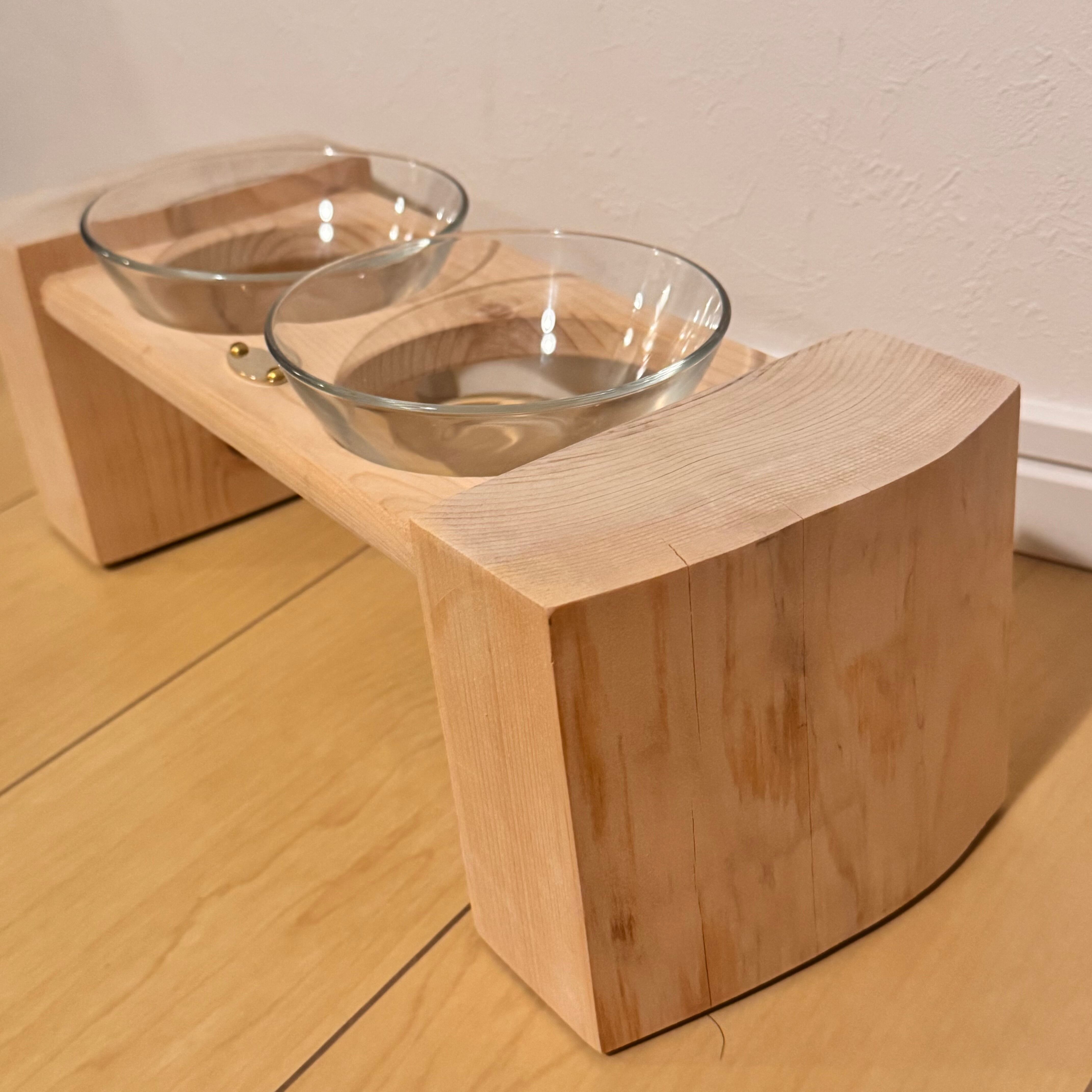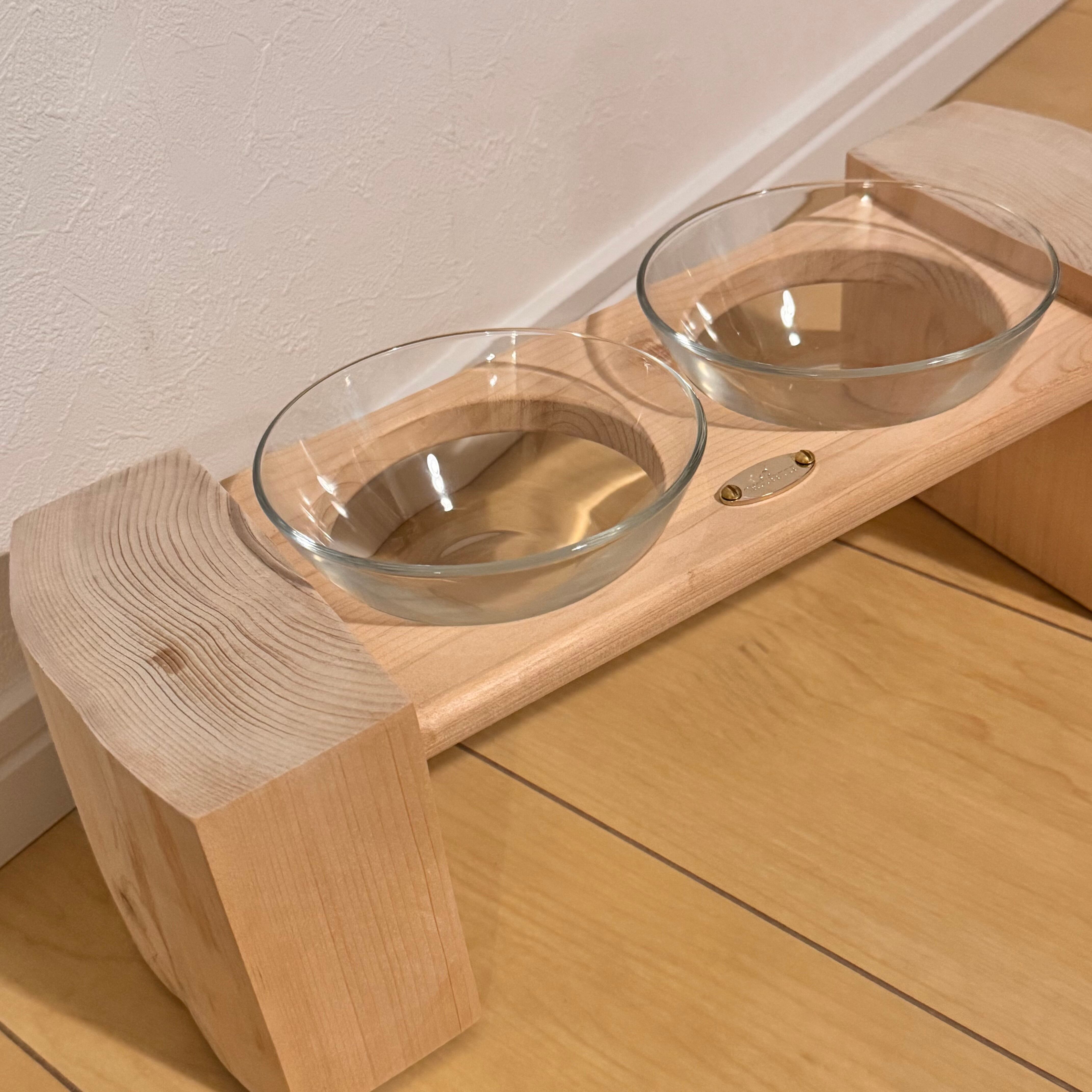 青森産のひばの木を使用した、温もりあふれるフードボウルスタンド。