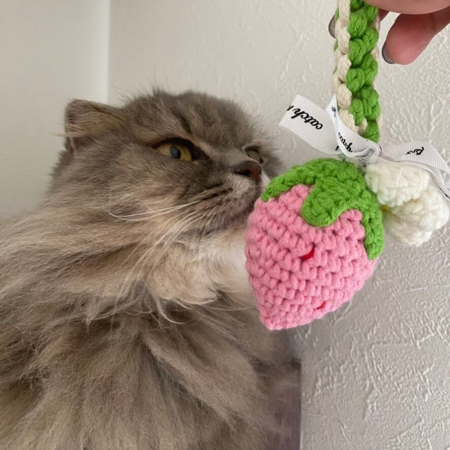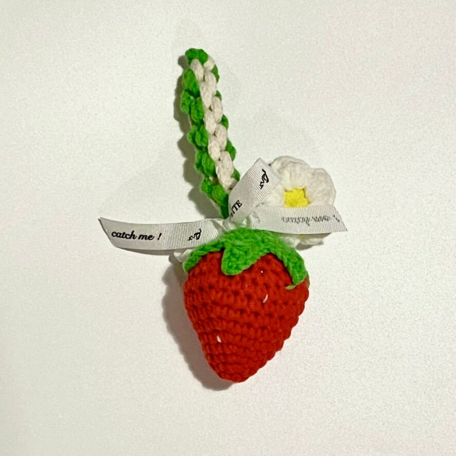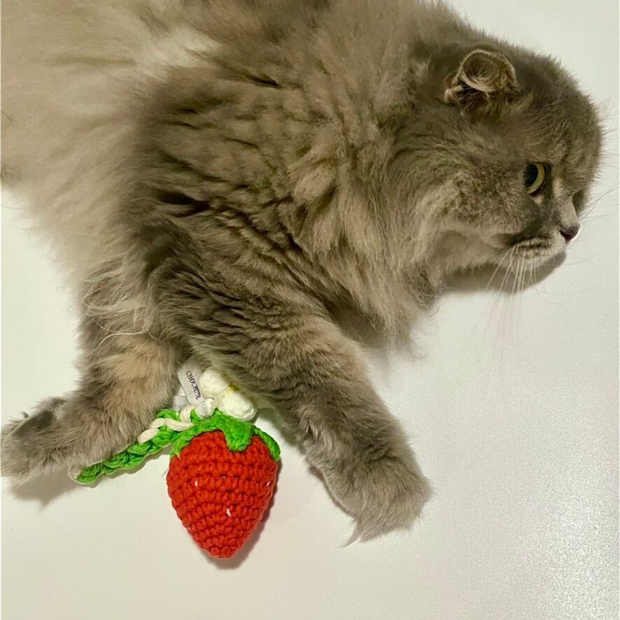 ストロベリーの形をしたニット素材のハミガキスティック。